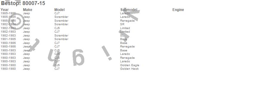 Below is an abbreviated list of applications for the Sport Bar Cover.CJ5, CJ7, Scrambler, Jeep, 1986, 1985, 1984, 1983, 1982, 1981, 1980