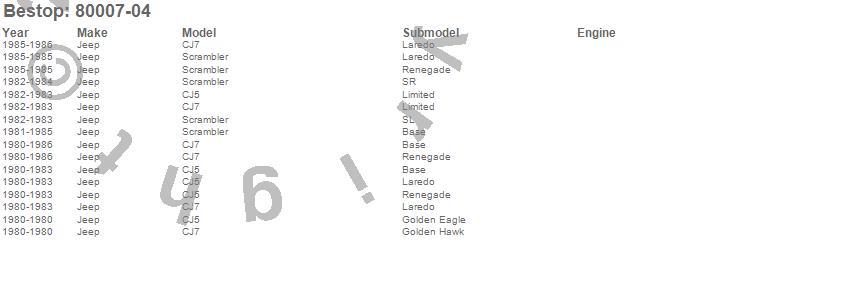 Below is an abbreviated list of applications for the Sport Bar Cover.CJ5, CJ7, Scrambler, Jeep, 1986, 1985, 1984, 1983, 1982, 1981, 1980