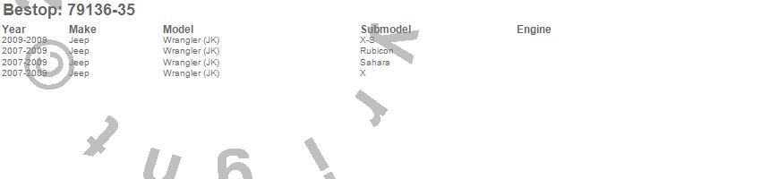 Below is an abbreviated list of applications for the Replace-A-Top.Wrangler (JK), Jeep, 2009, 2008, 2007