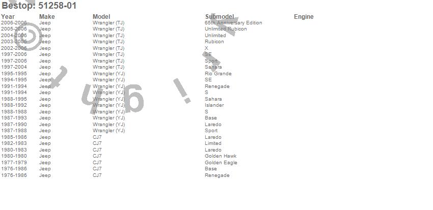 Brand: BestopPart Number: 51258-01Door Mirror Bracket Type: Black - Sold In Pairs - 2 pc. Door - For Use w/PN[51261] - [Available While Supplies Last]UPC: 077848055639