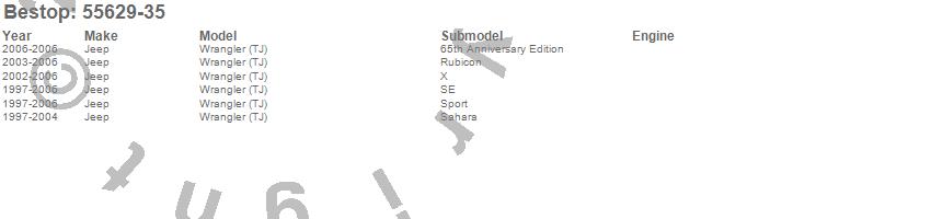 Below is an abbreviated list of applications for the Supertop Classic Replacement Skin.Wrangler (TJ), Jeep, 2006, 2005, 2004, 2003, 2002, 2001, 2000, 1999, 1998, 1997