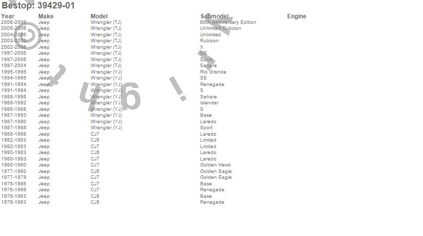 Brand: BestopPart Number: 39429-01Seat Type: Black - Front - Low-Back - Vinyl - Bucket - Fits Factory Seats - Requires Seat Adapter PN[51256-01] Per SeatUPC: 077848027964