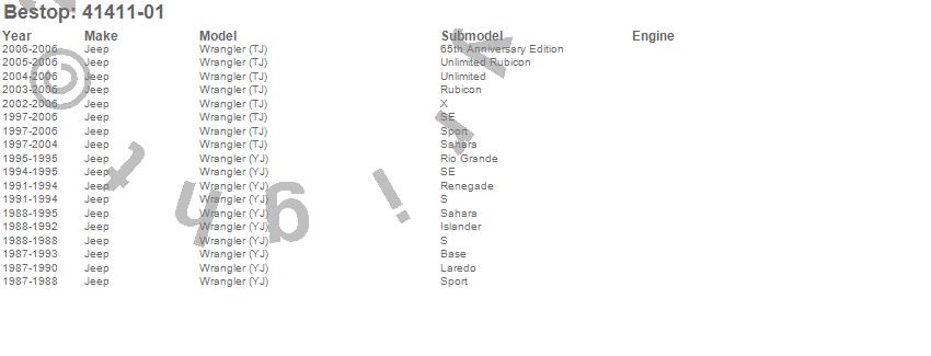 Below is an abbreviated list of applications for the HighRock 4x4 Tailgate Rack Bracket Kit.Wrangler (TJ), Wrangler (YJ), Jeep, 2006, 2005, 2004, 2003, 2002, 2001, 2000, 1999, 1998, 1997, 1995, 1994, 1993, 1992, 1991, 1990, 1989