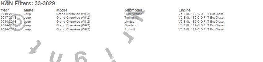 Below is an abbreviated list of applications for the Air Filter.Grand Cherokee, Jeep, 2018, 2017, 2016, 2015, 2014