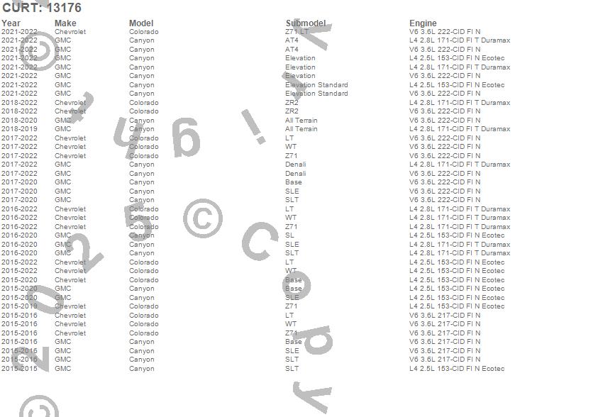 Below is an abbreviated list of applications for the Class III 2 in. Receiver Hitch.Canyon, Colorado, Chevrolet, GMC, 2022, 2021, 2020, 2019, 2018, 2017, 2016, 2015