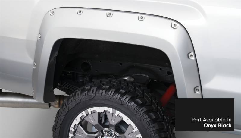 Buy this Pocket Style Color Match Fender Flares Bushwacker 40967-34 4 pc. - Front Tire Coverage 1.75 in. - Front Height 6.5 in. - Rear Tire Coverage 2 in - Rear Height 6.5 in. - Black here at SVCustoms.com an authorized Bushwacker Fender Flare dealer and distributor.