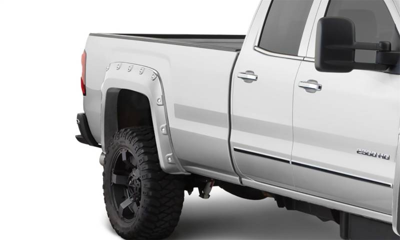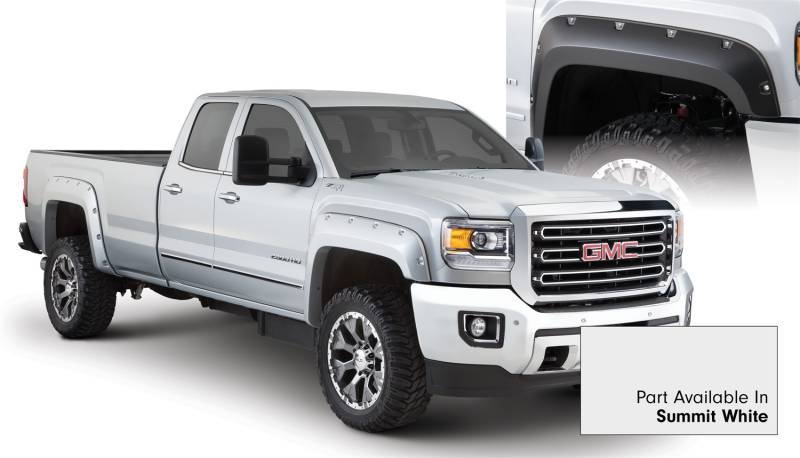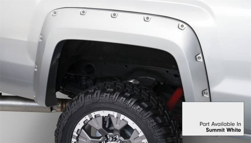 Buy this Pocket Style Color Match Fender Flares Bushwacker 40967-14 4 pc. - Front Tire Coverage 1.75 in. - Front Height 6.5 in. - Rear Tire Coverage 2 in - Rear Height 6.5 in. - Summit White here at SVCustoms.com an authorized Bushwacker Fender Flare dealer and distributor.