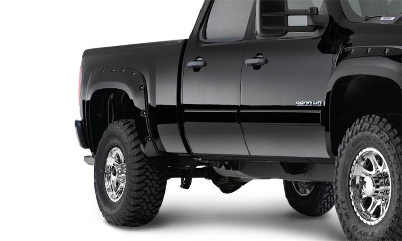 Buy this Pocket Style Color Match Fender Flares Bushwacker 40957-34 4 pc. - Front Tire Coverage 2 in. - Front Height 6.5 in. - Rear Tire Coverage 1.75 in - Rear Height 6.5 in. - Black here at SVCustoms.com an authorized Bushwacker Fender Flare dealer and distributor.