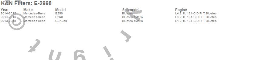 Below is an abbreviated list of applications for the Air Filter.E250, GLK250, Mercedes-Benz, 2015, 2014, 2013