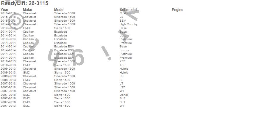 Brand: ReadyLiftPart Number: 26-3115Add A Leaf Type: 1.5 in. LiftUPC: 804879510499