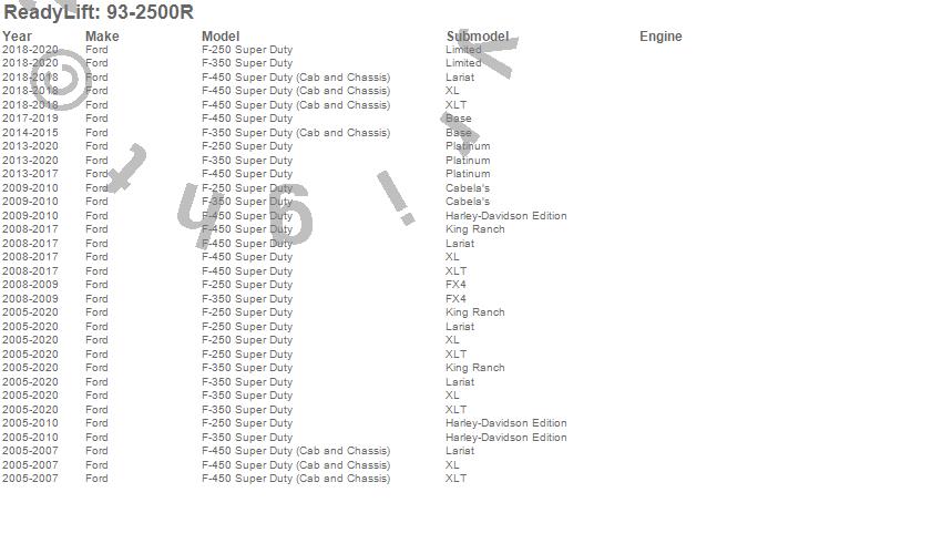 Below is an abbreviated list of applications for the SST3000 Shock Absorber.F-250 Super Duty, F-350 Super Duty, F-450 Super Duty, Ford, 2020, 2019, 2018, 2017, 2016, 2015, 2014, 2013, 2012, 2011, 2010, 2009, 2008, 2007, 2006, 2005