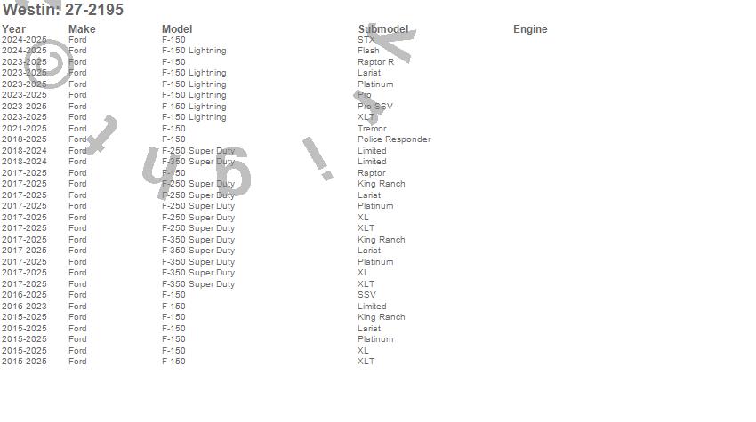 Brand: WestinPart Number: 27-2195Running Board Mount Kit Type: Black Finish - For Super Crew CabUPC: 707742065167
