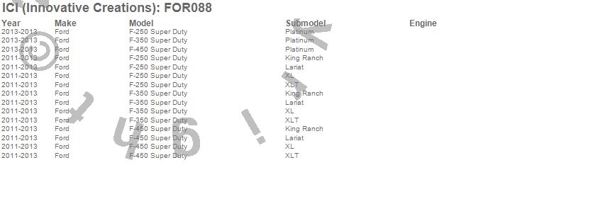 Brand: ICI (Innovative Creations)Part Number: FOR088Fender Molding Type: 4 pcs. - Full FitUPC: 845426020184