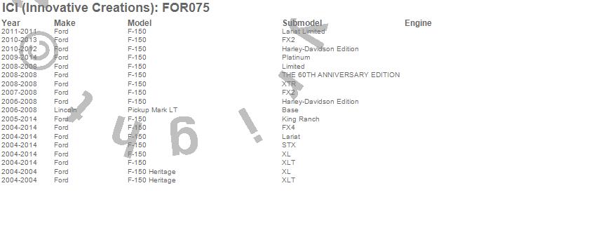 Brand: ICI (Innovative Creations)Part Number: FOR075Fender Molding Type: 4 pcs. - Full FitUPC: 845426020122