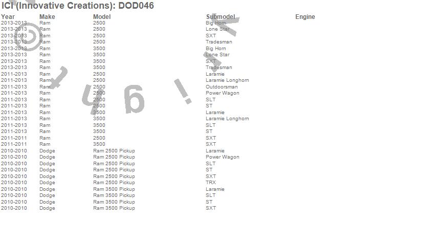 Brand: ICI (Innovative Creations)Part Number: DOD046Fender Molding Type: 4 pcs. - Full FitUPC: 845426017078