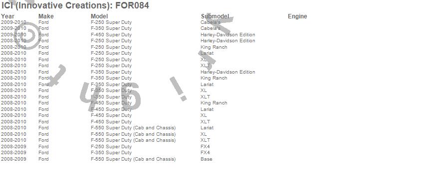 Brand: ICI (Innovative Creations)Part Number: FOR084Fender Molding Type: 4 pcs. - Full Fit - w/o Mud FlapsUPC: 845426020177