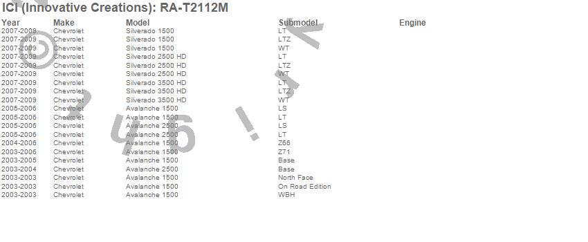 Below is an abbreviated list of applications for the Rocker Armor Kits.Avalanche 1500, Avalanche 2500, Silverado 1500, Silverado 2500 HD, Silverado 3500 HD, Chevrolet, 2009, 2008, 2007, 2006, 2005, 2004, 2003