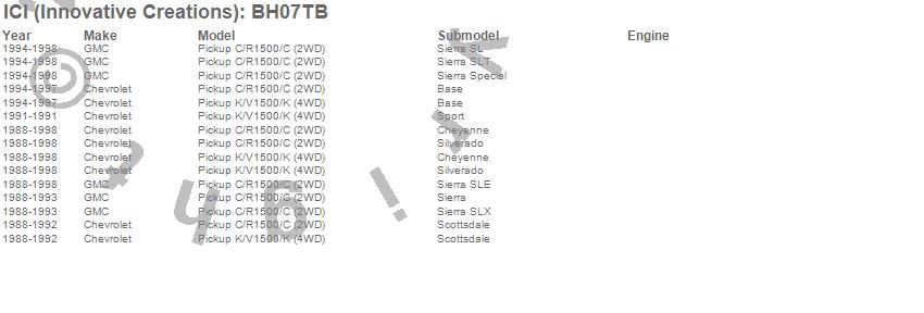 Below is an abbreviated list of applications for the Truck Bed Bulkhead Cap.C1500 Pickup, K1500 Pickup, Chevrolet, GMC, 1998, 1997, 1996, 1995, 1994, 1993, 1992, 1991, 1990, 1989, 1988