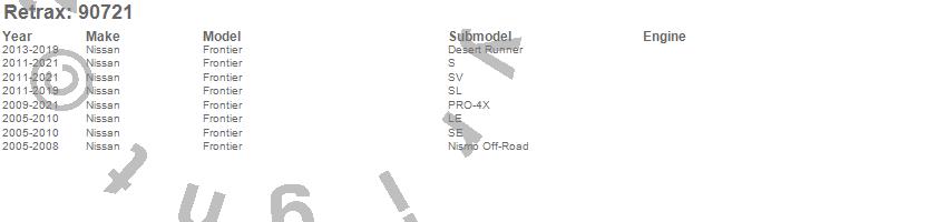 Below is an abbreviated list of applications for the PowertraxPRO MX Retractable Tonneau Cover.Frontier, Nissan, 2021, 2020, 2019, 2018, 2017, 2016, 2015, 2014, 2013, 2012, 2011, 2010, 2009, 2008, 2007, 2006, 2005