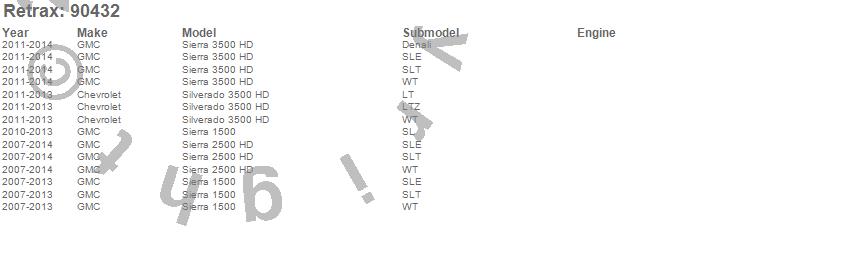 Brand: RetraxPart Number: 90432Tonneau Cover Type: w/Wide RETRAX Rail - Rugged Aluminum Construction - Matte BlackUPC: 840563110330