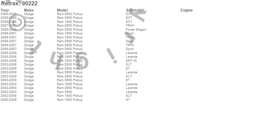 Below is an abbreviated list of applications for the PowertraxPRO MX Retractable Tonneau Cover.Ram 1500, Ram 2500, Ram 3500, Dodge, 2009, 2008, 2007, 2006, 2005, 2004, 2003, 2002