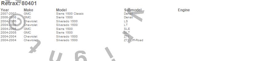 Below is an abbreviated list of applications for the RetraxPRO MX Retractable Tonneau Cover.Sierra 1500, Silverado 1500, Chevrolet, GMC, 2007, 2006, 2005, 2004