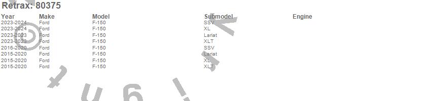 Below is an abbreviated list of applications for the RetraxPRO MX Retractable Tonneau Cover.F-150, Ford, 2024, 2023, 2020, 2019, 2018, 2017, 2016, 2015