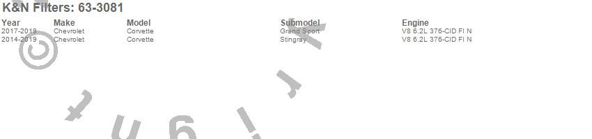 Below is an abbreviated list of applications for the Filtercharger Injection Performance Kit.Corvette, Chevrolet, 2019, 2018, 2017, 2016, 2015, 2014
