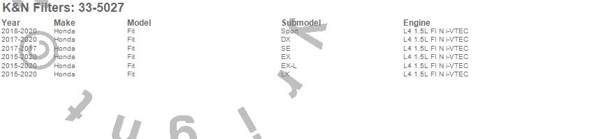 Brand: K&N FiltersPart Number: 33-5027Air Filter Type: Panel - H-1.031 in. - L-7.844 in. - W-5.594 in.UPC: 024844354792