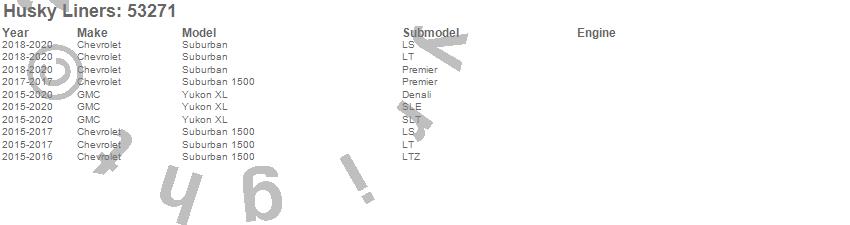 Below is an abbreviated list of applications for the X-act Contour Floor Liner.Suburban, Suburban 1500, Yukon XL, Chevrolet, GMC, 2020, 2019, 2018, 2017, 2016, 2015