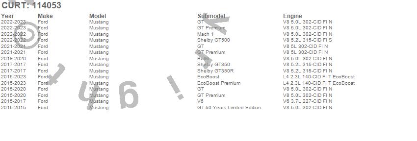 Below is an abbreviated list of applications for the Class I 1.25 in. Receiver Hitch.Mustang, Ford, 2023, 2022, 2021, 2020, 2019, 2018, 2017, 2016, 2015