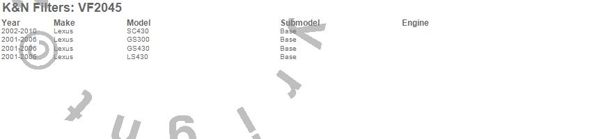 Below is an abbreviated list of applications for the Cabin Air Filter.GS300, GS430, LS430, SC430, Lexus, 2010, 2009, 2008, 2007, 2006, 2005, 2004, 2003, 2002, 2001