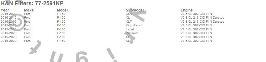 Below is an abbreviated list of applications for the Performance Induction Kit.F-150, Ford, 2019, 2018, 2017, 2016, 2015