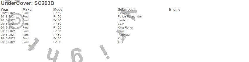 Brand: UnderCoverPart Number: SC203DTruck Bed Storage Box Type: Drivers Side - Black SmoothUPC: 897197010598