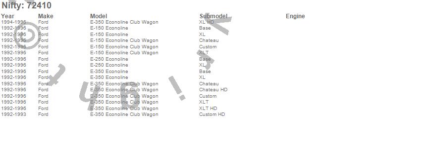 Below is an abbreviated list of applications for the Pro-Line Replacement Carpet.E-150 Econoline, E-150 Econoline Club Wagon, E-250 Econoline, E-350 Econoline, E-350 Econoline Club Wagon, Ford, 1996, 1995, 1994, 1993, 1992