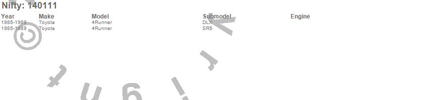 Below is an abbreviated list of applications for the Pro-Line Replacement Carpet.4Runner, Toyota, 1989, 1988, 1987, 1986, 1985