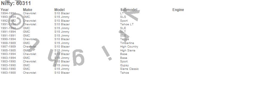 Below is an abbreviated list of applications for the Pro-Line Replacement Carpet.S10 Blazer, S15 Jimmy, Chevrolet, GMC, 1994, 1993, 1992, 1991, 1990, 1989, 1988, 1987, 1986, 1985, 1984, 1983