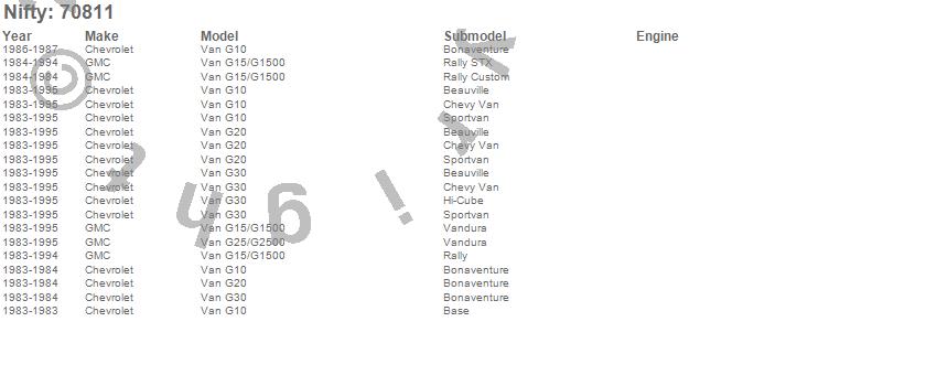 Below is an abbreviated list of applications for the Pro-Line Replacement Carpet.G10 Van, G15/G1500 Van, G20 Van, G25/G2500 Van, G30 Van, Chevrolet, GMC, 1995, 1994, 1993, 1992, 1991, 1990, 1989, 1988, 1987, 1986, 1985, 1984, 1983