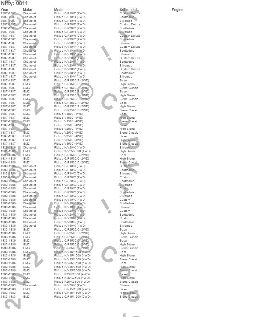 Below is an abbreviated list of applications for the Pro-Line Replacement Carpet.C10 Pickup, C1500 Pickup, C20 Pickup, C2500 Pickup, C30 Pickup, C3500 Pickup, K10 Pickup, K1500 Pickup, K20 Pickup, K2500 Pickup, K30 Pickup, K3500 Pickup, R10 Pickup, R1500 Pickup, R20 Pickup, R2500 Pickup, R30 Pickup, R3500 Pickup, V10 Pickup, V1500 Pickup