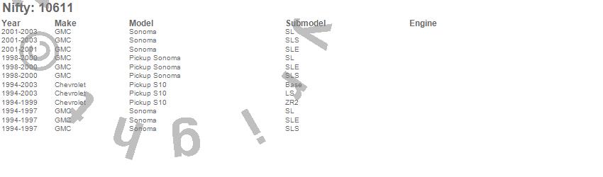 Below is an abbreviated list of applications for the Pro-Line Replacement Carpet.S10 Pickup, Sonoma, Chevrolet, GMC, 2003, 2002, 2001, 2000, 1999, 1998, 1997, 1996, 1995, 1994