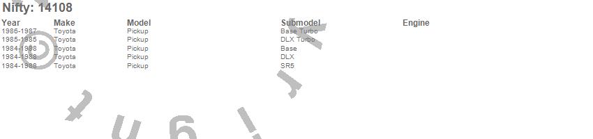 Below is an abbreviated list of applications for the Pro-Line Replacement Carpet.Pickup, Toyota, 1988, 1987, 1986, 1985, 1984