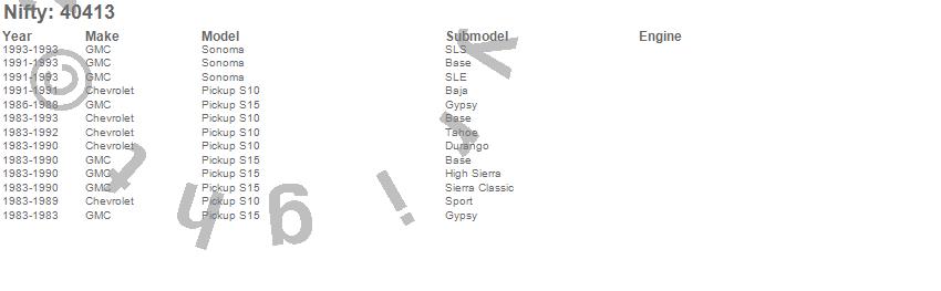 Below is an abbreviated list of applications for the Pro-Line Replacement Carpet.S10 Pickup, S15 Pickup, Sonoma, Chevrolet, GMC, 1993, 1992, 1991, 1990, 1989, 1988, 1987, 1986, 1985, 1984, 1983
