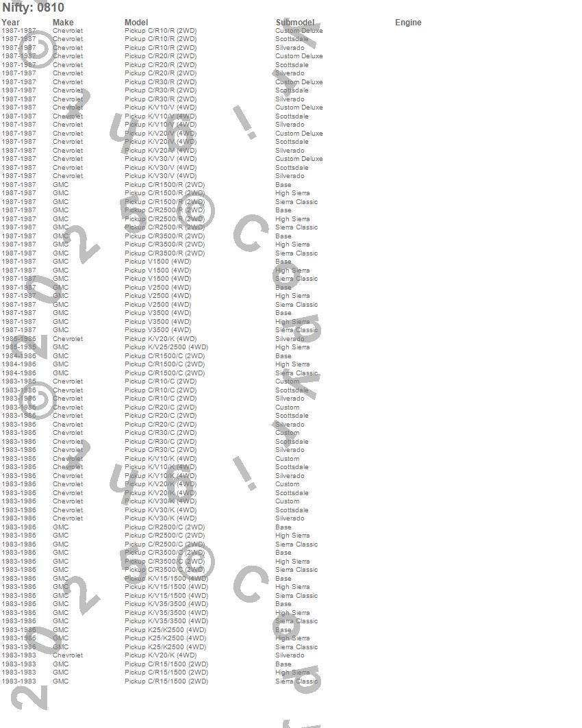 Below is an abbreviated list of applications for the Pro-Line Replacement Carpet.C10 Pickup, C1500 Pickup, C20 Pickup, C2500 Pickup, C30 Pickup, C3500 Pickup, K10 Pickup, K1500 Pickup, K20 Pickup, K2500 Pickup, K30 Pickup, K3500 Pickup, R10 Pickup, R1500 Pickup, R20 Pickup, R2500 Pickup, R30 Pickup, R3500 Pickup, V10 Pickup, V1500 Pickup