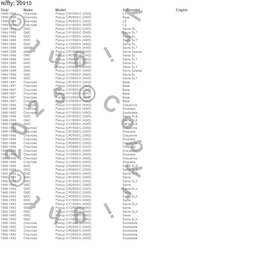 Below is an abbreviated list of applications for the Pro-Line Replacement Carpet.C1500 Pickup, C2500 Pickup, C3500 Pickup, K1500, K1500 Pickup, K2500 Pickup, K3500 Pickup, Chevrolet, GMC, 2000, 1999, 1998, 1997, 1996, 1995, 1994, 1993, 1992, 1991, 1990