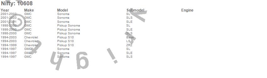 Below is an abbreviated list of applications for the Pro-Line Replacement Carpet.S10 Pickup, Sonoma, Chevrolet, GMC, 2003, 2002, 2001, 2000, 1999, 1998, 1997, 1996, 1995, 1994