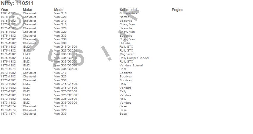Below is an abbreviated list of applications for the Pro-Line Replacement Carpet.G10 Van, G15/G1500 Van, G20 Van, G25/G2500 Van, G30 Van, G35/G3500 Van, Chevrolet, GMC, 1982, 1981, 1980, 1979, 1978, 1977, 1976, 1975, 1974, 1973