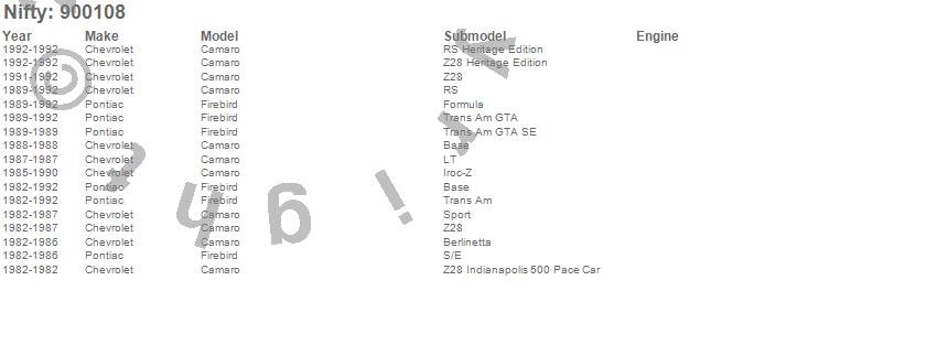 Below is an abbreviated list of applications for the Pro-Line Replacement Carpet.Camaro, Firebird, Chevrolet, Pontiac, 1992, 1991, 1990, 1989, 1988, 1987, 1986, 1985, 1984, 1983, 1982