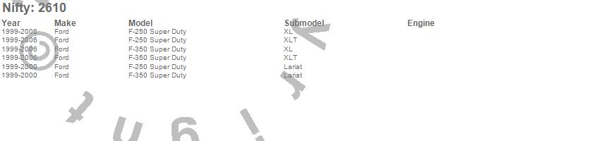 Below is an abbreviated list of applications for the Pro-Line Replacement Carpet.F-250 Super Duty, F-350 Super Duty, Ford, 2006, 2005, 2004, 2003, 2002, 2001, 2000, 1999