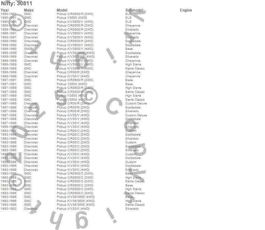 Below is an abbreviated list of applications for the Pro-Line Replacement Carpet.C20 Pickup, C2500 Pickup, C30 Pickup, C3500 Pickup, K20 Pickup, K30 Pickup, K3500 Pickup, R30 Pickup, R3500 Pickup, V30 Pickup, V3500 Pickup, Chevrolet, GMC, 1991, 1990, 1989, 1988, 1987, 1986, 1985