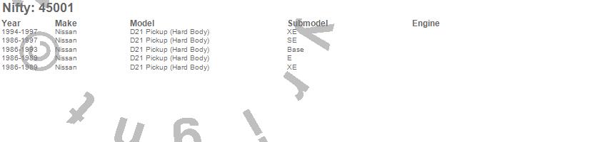 Below is an abbreviated list of applications for the Pro-Line Replacement Carpet.D21 Pickup (Hard Body), Nissan, 1997, 1996, 1995, 1994, 1993, 1992, 1991, 1990, 1989, 1988, 1987, 1986